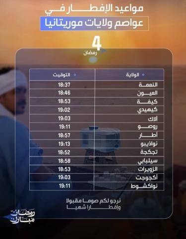 أوقات إفطار السبت ثالث أيام رمضان في عموم موريتانيا