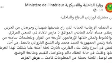 بيان مشترك بين الداخلية والدفاع يُعلن عن مقتل ثلاثة إرهابيين واستشهاد دركي