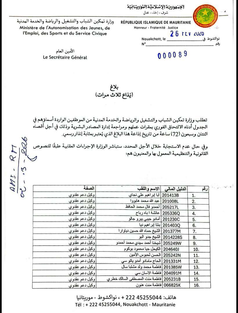 وزارة تمكين الشباب تُنذر موظفين متغيبين وتتلوح بإجراءات
