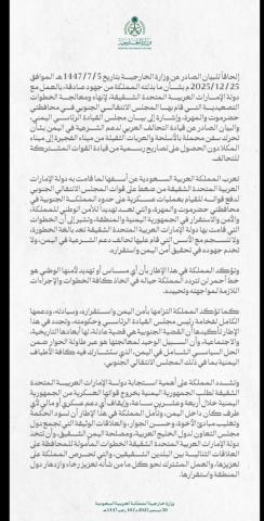 وزارة الخارجية السعودية تصدر بيانا اليوم بشأن الوضع في اليمن