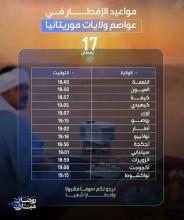 أوقات إفطار اليوم الـ17 من رمضان في عموم موريتانيا