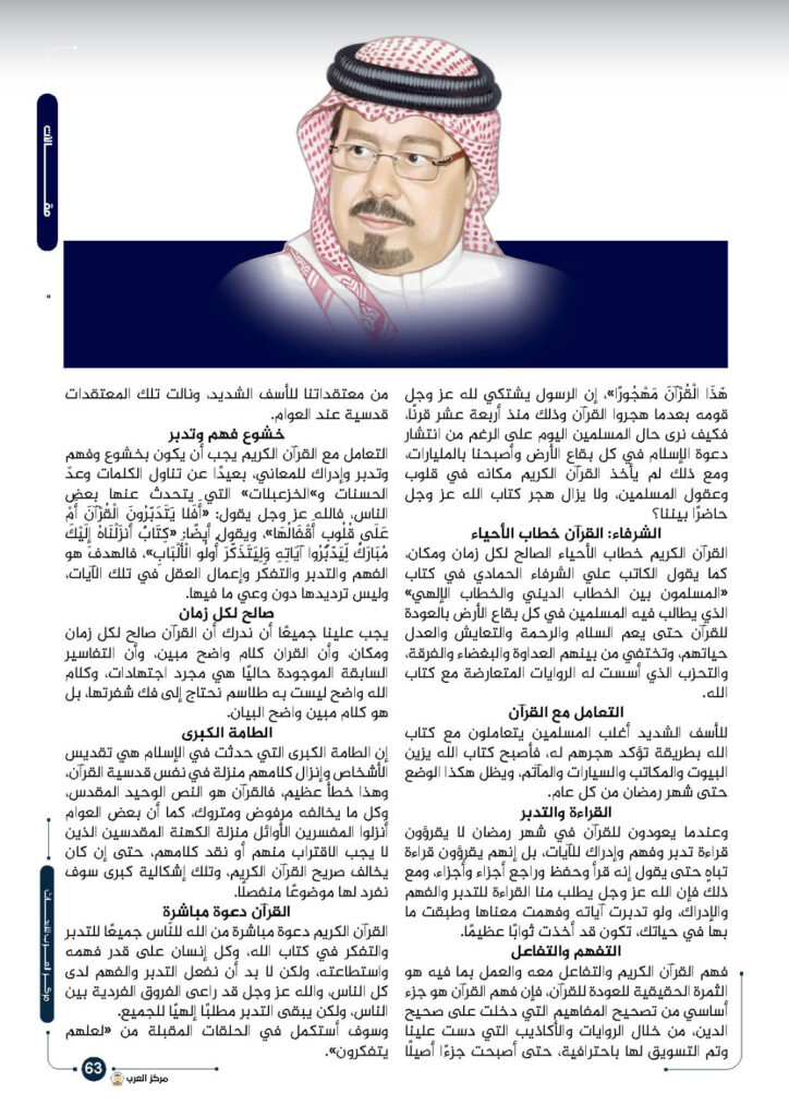 القرآن الكريم كلام الله المقدس الذي لَا يَأْتِيهِ الْبَاطِلُ مِن بَيْنِ يَدَيْهِ وَلَا مِنْ خَلْفِهِ، والذي يرسم للناس جميعًا خارطة طريق “الرحمة والعدل والحرية والسلام”، وحول هذا الطرح يقول الكاتب علي محمد الشرفاء الحمادي: “القرآن (خطاب الأحياء) ويمثل المنهج الإلهي الصحيح الذي جاء به الرسول عليه السلام، ومع ذلك هجر المسلمون هذا المنهج الصحيح لصالح الإسرائيليات المحرفة التي نالت من سماحة الإسلام وألصقت به التهم والأباطيل، فتحرف المسار ودبت الفرقة والنزاع والخلاف بين المسلمين وضعفت قوتهم وذهبت ريحهم”.. إلى التفاصيل..