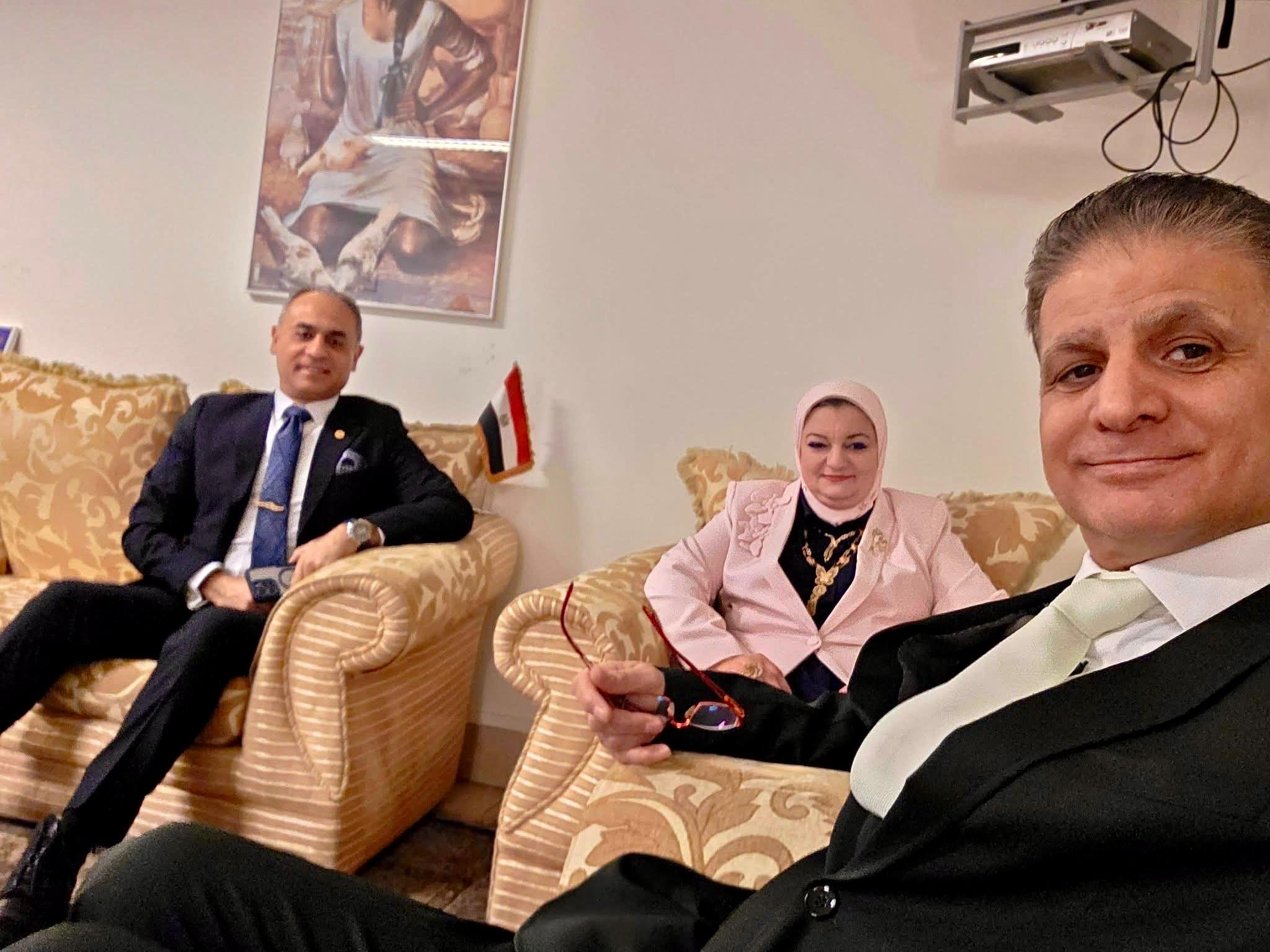 وتُوّجت الزيارة بعقد لقاء موسّع مع الجالية المصرية والعربية في بيت الأمم، تحت رعاية السفير الدكتور أحمد فهمي، وبالتعاون مع المكتب الثقافي ووزارة التعليم العالي، وبمشاركة الوزيرة المفوضة هبة نجم، ووفد مؤسسة رسالة السلام العالمية.