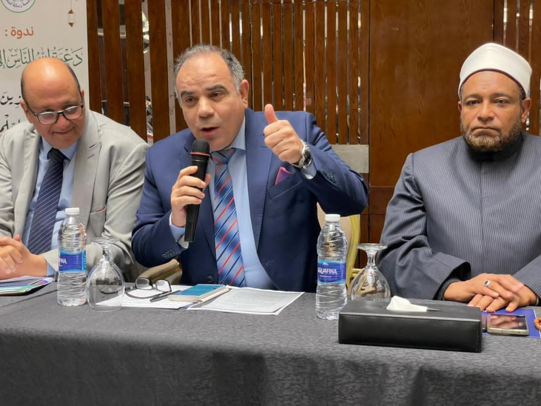 جاء ذلك خلال كلمته التي القاها نيابة عنه الكاتب الصحفي مجدي طنطاوي المدير العام لمؤسسة " رسالة السلام " خلال فعاليات الندوة التي تنظمها المؤسسة تحت عنوان: «دعوة الله الناس إلى السلام.. " يَا أَيُّهَا الَّذِينَ آمَنُوا ادْخُلُوا فِي السِّلْمِ كَافَّةً " ، الندوة تنعقد برئاسة الكاتب الصحفي مجدي طنطاوي الامين العام للمؤسسة ويديرها الكاتب الصحفي الدكتور معتز صلاح الدين رئيس مجلس امناء المؤسسة بالقاهرة .