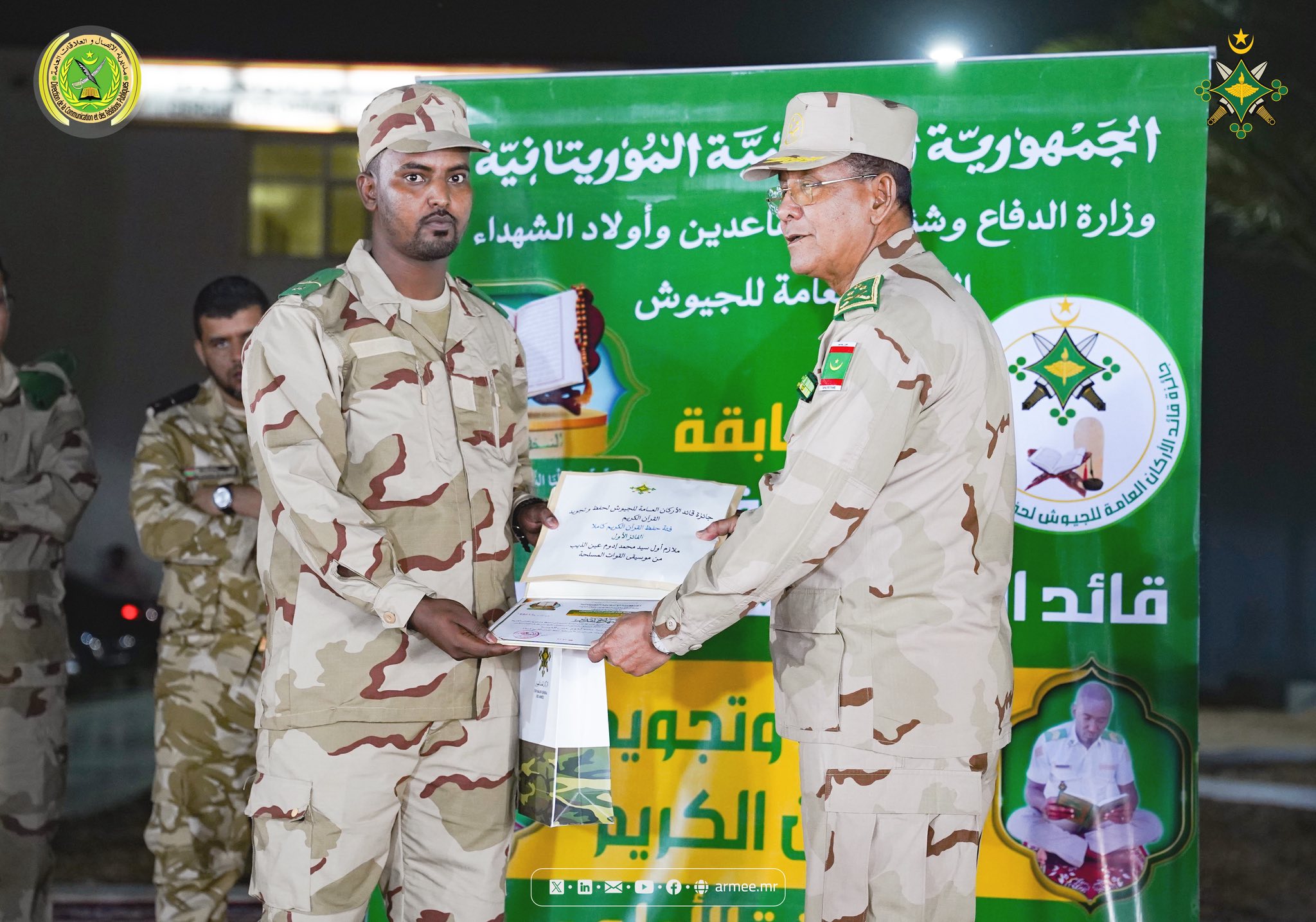 أشرف قائد الأركان العامة للجيوش الفريق محمد ولد الرايس ليلة البارحة على حفل إفطار رسمي لتكريم الفائزين في النسخة الأولى من مسابقة "جائزة قائد الأركان العامة للجيوش لحفظ وتجويد القرآن الكريم".