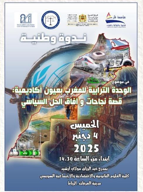 تتهيّأ كلية العلوم القانونية والاقتصادية والاجتماعية – السويسي بالرباط، بعد غدٍ الخميس 4 دجنبر 2025، لاحتضان حدث أكاديمي وطني بارز تنظمه مؤسسة فكر للتنمية والثقافة والعلوم بشراكة مع قطاع الثقافة والكلية المذكورة، وذلك في موضوع: