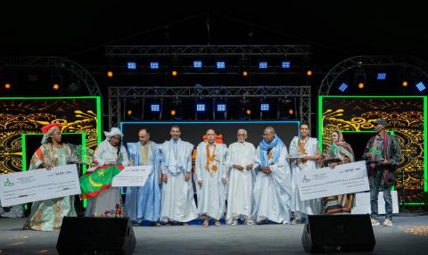 أشرف فخامة رئيس الجمهورية السيد محمد ولد الشيخ الغزواني على توزيع جوائز رئيس الجمهورية للفنون الجميلة في ختام الأمسية الثقافية والفنية الرسمية، التي شهدتها مدينة وادان، ضمن فعاليات النسخة الرابعة عشرة من مهرجان مدائن التراث.
