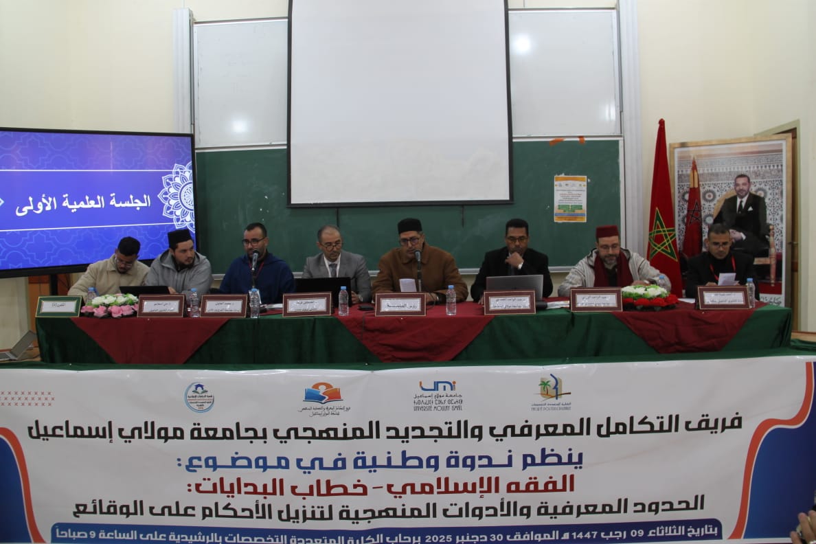 احتضنت الكلية المتعددة التخصصات بالرشيدية جنوب شرق المملكة المغربية، يوم الثلاثاء 30 دجنبر 2025، ندوة وطنية علمية في موضوع «الفقه الإسلامي – خطاب البدايات: الحدود المعرفية والأدوات المنهجية لتنزيل الأحكام على الوقائع»، بمشاركة نخبة من الباحثين والأكاديميين المتخصصين في الفقه وأصوله والقانون، في سياق علمي يروم تجديد النظر المنهجي ومواكبة التحولات المعاصرة.
