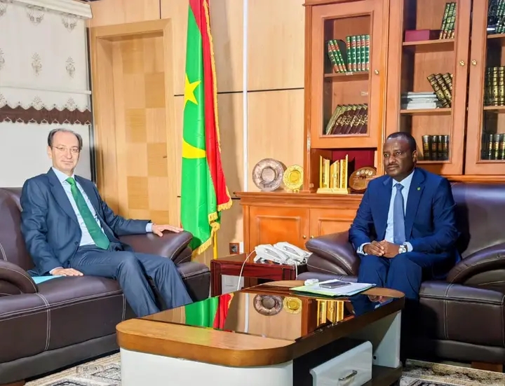 Jan 15 / التعليقات وزير العدل يبحث التعاون مع سفير إسبانيا استقبل وزير العدل محمد ولد اسويدات، اليوم الخميس في مكتبه، بابلو باريرا غوميز، سفير مملكة إسبانيا المعتمد في موريتانيا.وجرى خلال اللقاء استعراض مجالات التعاون بين وزارة العدل والجانب الإسباني، وسبل تطويرها. خميس, 2026/01/15 - 18:53