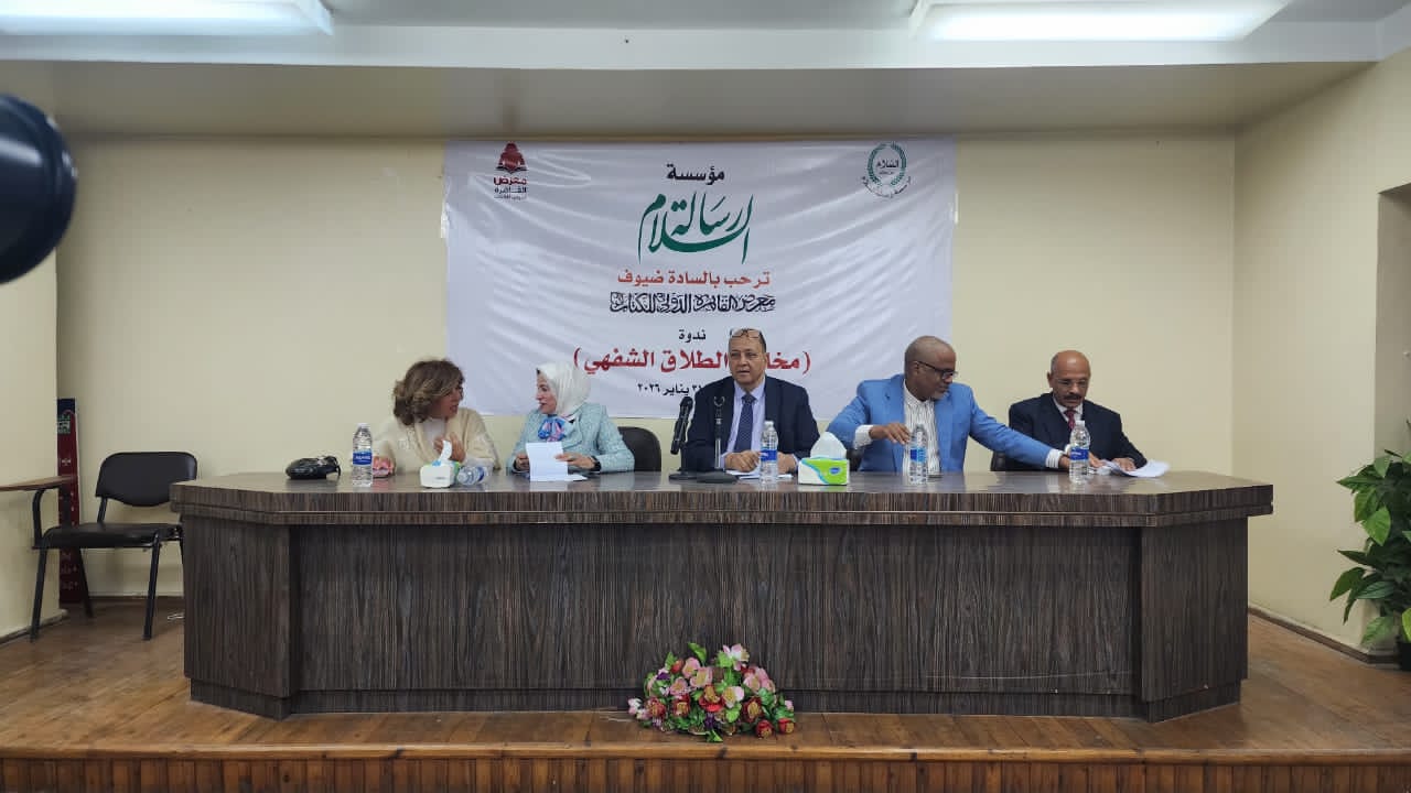 انطلقت منذ قليل، وسط حضور جماهيري لافت وغير مسبوق، فعاليات الندوة التي تنظمها مؤسسة " رسالة السلام " تحت عنوان " مخاطر الطلاق الشفهي " وذلك على هامش مشاركتها في معرض القاهرة الدولي للكتاب، في إطار جهودها التوعوية الهادفة إلى دعم استقرار الأسرة المصرية وتعزيز الوعي المجتمعي بالقضايا الأسرية .