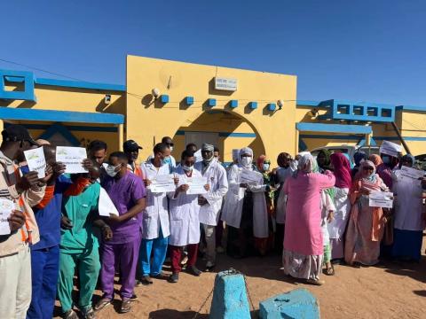 نظم عمال وموظفي مركز الإستطباب بمدينة ازويرات صباح اليوم وقفة إحتجاجية أمام مركز الإستطباب.