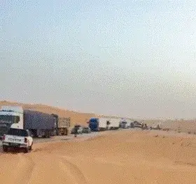 Apr 09 / التعليقات إغلاق طريق نواكشوط - نواذيبو عند الكلم 140 إثر تعطل شاحنة أدى تعطل شاحنة عند الكيلومتر 140 من مدينة نواذيبو إلى إغلاق طريق نواكشوط – نواذيبو، مما تسبب في توقف شبه كامل لحركة السير وشلل مروري في كلا الاتجاهين.وتعطلت الشاحنة إثر محاولة سائق شاحنة الانعطاف، مما أدى إلى تعطلها وانسداد المسار بشكل شبه كامل أمام حركة المرور. خميس, 2026/04/09 - 13:53