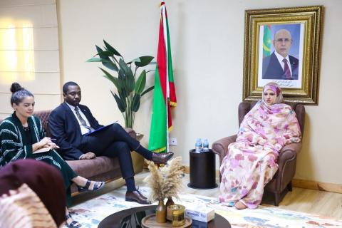 استقبلت معالي وزيرة العمل الاجتماعي والطفولة والأسرة، السيدة صفية انتهاه، صباح اليوم الثلاثاء في مكتبها بنواكشوط، رئيس بعثة وكالـة الأمم المتحدة للهجـرة في موريتانيا(IOM) السيد إدريسـا سومبـاري.
