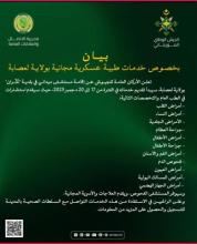 الجيش يعلن إقامة مستشفى ميدانيا بلكران لتقديم استشارات في عدة تخصصات