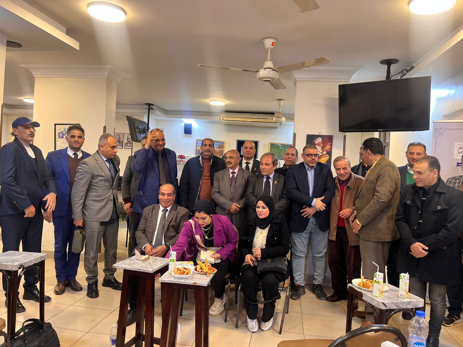 مقرر الندوة الكاتب الصحفي محمد فتحي الشريف، رئيس مركز العرب للأبحاث والدراسات، والدكتور أبو الفضل الإسنّاوي، رئيس مركز رع للأبحاث والدراسات، والدكتور محمد يحيى غيدة، نائب رئيس مركز العرب للأبحاث والدراسات .