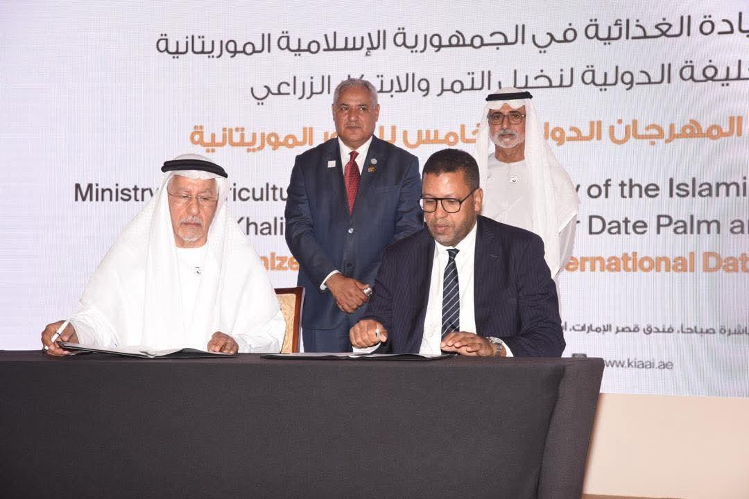 وقّعت موريتانيا، في أبوظبي، مذكرة تفاهم مع دولة الإمارات العربية المتحدة لتنظيم النسخة الخامسة من المهرجان الدولي للتمور الموريتانية، في إطار دعم التعاون الزراعي بين البلدين.
